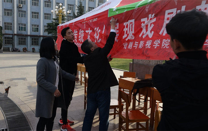 巨人广场上精彩的经典片段演绎,引得现场掌声迭起,呼声阵阵。神出鬼没的“快闪”使同学们感到惊喜之余,释放了压力和自我,洋溢着青春的朝气。画脸谱活动、现场体验戏剧特色油彩妆、趣味知识问答等丰富多彩的活动,使大家零距离接触了中华传统戏剧的魅力。