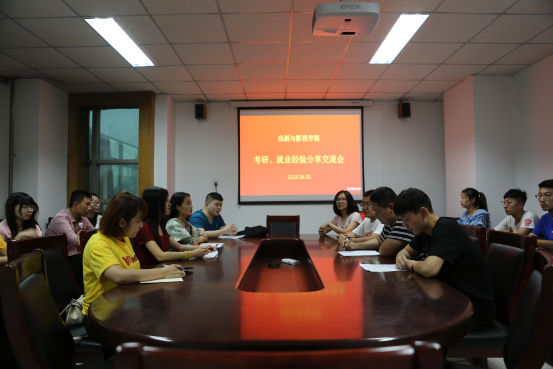 首先,袁楠老师代表戏剧与影视学院团总支作了重要讲话,她对出色的研究生们和即将毕业的大四学生给予了高度肯定,鼓励同学们要努力进取,奋斗不止。交流会中,刘旭东学长就自己在大学本科的追求过程为经,自身不断向上的心理状态为纬,向我们讲述了考研和大学中的历练这两件事不可替代的作用;张梦楠学姐就考研的态度问题和考研进程中应当注意的心态问题进行了详细的阐述;刘帅学长通过大量的数据,对当前考研形式进行了鞭辟入里的分析,为同学们考研指明方向;栗卓靖学姐以自己的切身经历向同学们讲述了考研的宝贵经验,铺开论述了考研当中四个重要的方面:选择、努力、方法、信念,强调要有效率的学习,多做真题;公冉然学姐分析了现在毕业生就业所面临的严峻形势,鼓励同学们要多学习,多实践,为踏入社会做好一切准备。张子恒、潘力学长通过朴实的语言,讲述了其在大学中的经历和见解,语言诙谐幽默,深入浅出,并把自己在搜集到的高校人才网等一系列求职网站与大家分享。