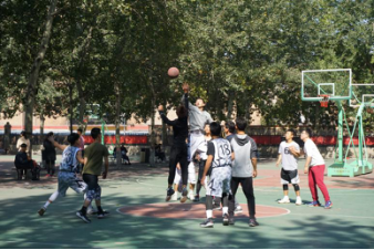 其他年级的学长。刚开始的时候,大一萌新锐不可当,凭借两个漂亮的三分球旗开得胜,在第一节的时候就以21:18的微弱优势先赢得一筹,不过老腊肉们也不可小觑,在步程中磨合默契,进退有序,很快就在第二节的时候以32:37的五分优势追回比分。