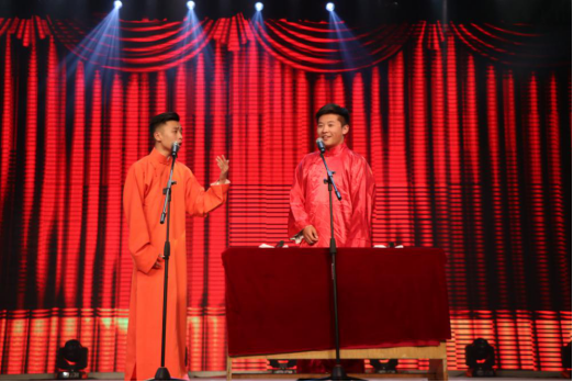 《寂静的天空》优美的舞蹈让观众们切实感受到了热情。朗诵《敬仰》歌颂了可歌可泣的民族之魂,燃起了大家浓浓的爱国情,由刘于峰老师、韩瑞芳老师、付增芝老师和李嘉琛同学共同带来的《戏曲联唱》,将晚会引向高潮,弘扬了传统文化,更展现了戏曲文化的魅力。精彩的演出赢得了阵阵掌声。