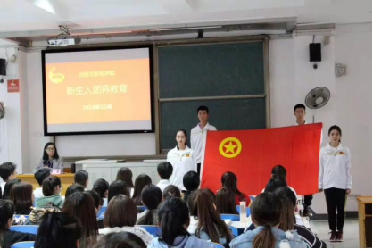 随后,全体共青团员们重温入团誓词,庄严的宣誓提高了同学们的使命感和责任感,使同学们对新时期团员先进性标准有了新的认识。1801班李娜同学作为新生团员代表发言,她呼吁同学们要一切以团纲、团章,规范一言一行,维护团的尊严,保持团的纯洁,树立团的威信。争做一名合格的共青团员,一名合格的社会主义建设者和接班人。