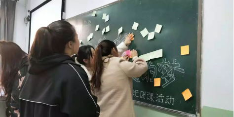之后全体同学又以贴便利贴的形式来表达同学们对大学四年的计划和期许,展现出同学们对于大学四年对自己的要求,大家在一起共同展望未来,表达和践行了习近平总书记的话语:“生活在我们伟大的祖国和伟大的时代的中国人民,共同享有人生出彩的机会,共同享有梦想成真的机会,共同享有同祖国和时代一起成长与进步的机会”。
