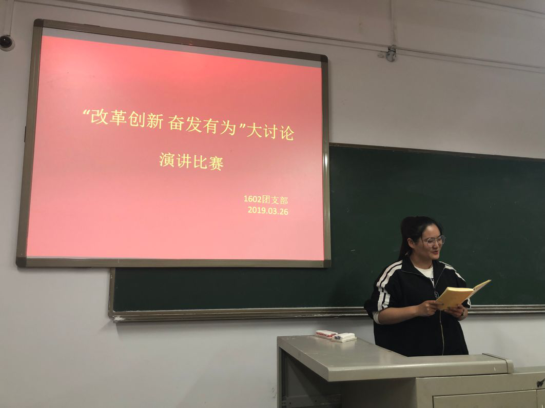 1702团支部于3月27日开展了“改革创新,奋发有为”的演讲活动。大家都站在自己理解的角度上以不同形式对“改革创新,奋发有为”大讨论进行了独特诠释。不少同学对当前形势的自我理解和讲述等,都使得主题演讲比赛增添了多样性。最后团支书进行总结关于我省开展“改革创新 奋发有为”大讨论形势下我们青年人应该如何作为,如何摆正自我定位,从我做起的。结合自身的演讲内容,向在场选手传授了如何应对主题演讲的思路和技巧,为所有演讲同学答疑解惑,使同学们对演讲主题有了更全面的把握。