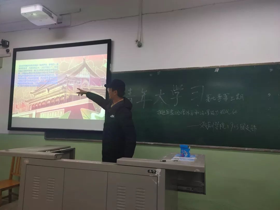 各团支书带领团员们一起学习,进入山西青年公众号观看了“青年大学习”最新团课视频并且积极答题完成打卡任务,答题环节是本次学习关键环节,使团员们概览式的学习了十九届四中全会精神。其次,团支书通过ppt的形式带领大家学习会议精神。团员青年们表示:身为一名团员,应将自己最好的一面展现出来,应紧贴时代步伐,做到学思践悟、学通弄懂、学以致用。