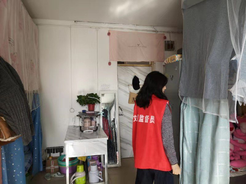 工作人员们于12:50准时进行分工协调工作。13:00分别对新松住宅区、华盛住宅区和校内学生宿舍进行具有针对性、完整性、纪律性的整查行动。具体考察分为寝室整洁情况、是否使用大功率电器、是否存在危险物品、是否私拉电线四项基本项目,实行违规情况辅助整改。