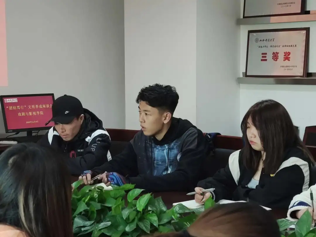 此次文明养成座谈会,使学生干部们受益匪浅,更有利于同学们心中树立起当代大学生的校园文明担当以及个人素质的全面提升,同时巩固和发展优良的学风建设,营造良好的育人环境,从而更好地实现我校文明校园的理想目标。