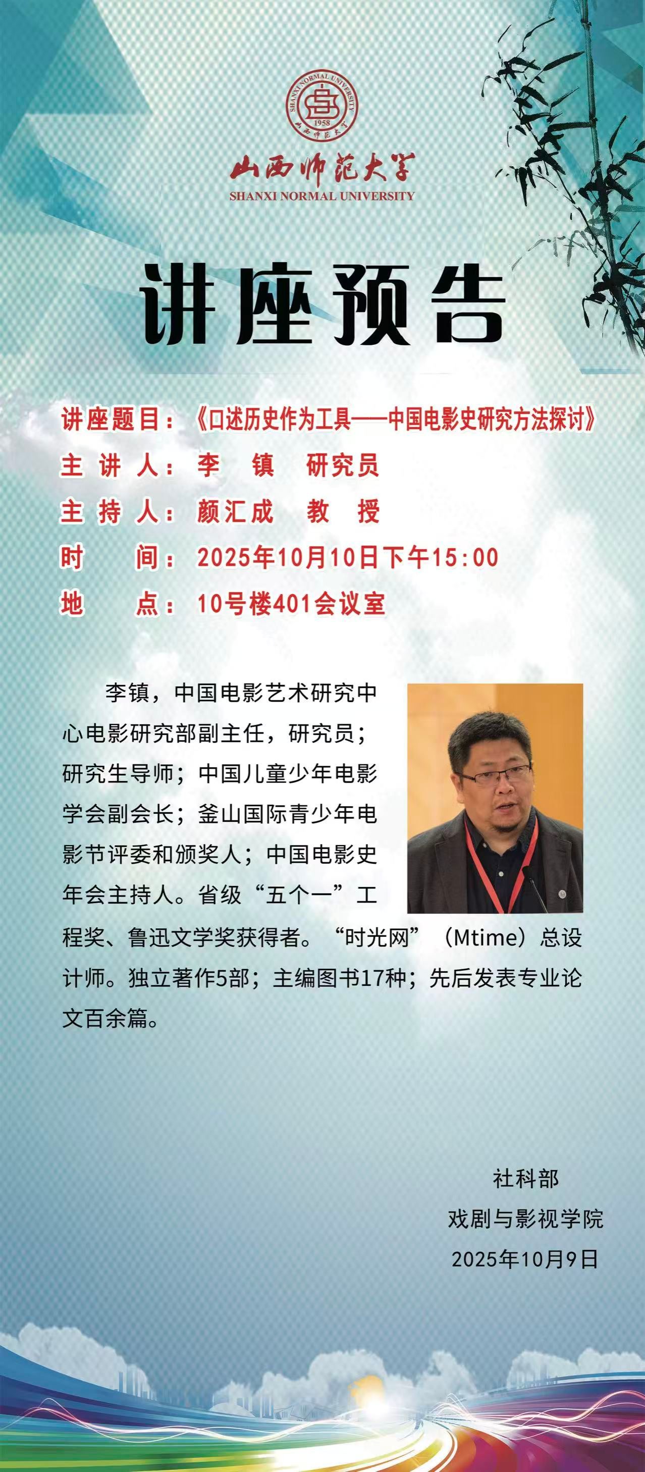 《口述历史作为工具——中国电影史研究方法探讨》讲座预告