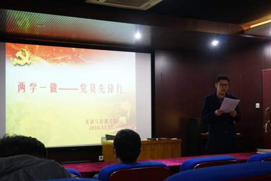 首先,教工支部新发展对象王艳老师结合自己在培训班中的切身体会出发,带领积极分子学习了“两学一做”的基本内容,认为“两学一做”基础在学、关键在做、重点在改,要“知之愈明则行之愈笃”,将理论付诸于实践,不断改正自身缺点,为学院的美好明天添砖加瓦。