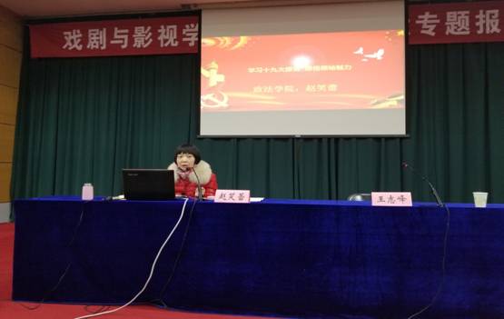 会议伊始,王志峰老师为大家介绍了赵笑蕾老师的学术经历。紧接着,赵笑蕾老师围绕主题《学习十九大精神,感悟领袖魅力》展开讲解,报告从四个方面进行:一是关于十九大的两大重要任务:明确决胜全面建成小康社会的重点,打好“三大攻坚战”,明确全面建设社会主义现代化国家及其“两步走”战略安排。二是剖析讲述现代化的发展与变化,完整勾勒了我国现代化建设的时间表和结构图。三是矛盾转变涉及经济核心问题,从总量向结构的转变、财富分配的重要性上升、从硬需求向软需求的转变、从增长到发展、从低收入国家到中等收入的转变五个方面进行了阐述。四是新时代中国共产党的历史使命:伟大梦想,在全面建成小康社会的基础上分两步走,在本世纪中叶建成富强民主文明和谐美丽的社会主义现代化强国。之后,赵老师用生动形象的图片带领大家一同感悟了习近平总书记的领袖魅力。