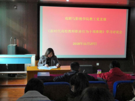 教工党支部在视听室召开《新时代高校教师职业行为十项准则》专题学习会议,会议由成人自拍