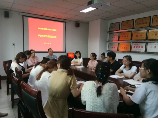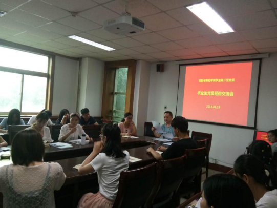 第二党支部组织全体党员同志于科学会堂A座302室开展“毕业生党员经验交流会”。会议由支部书记刘于锋老师主持。