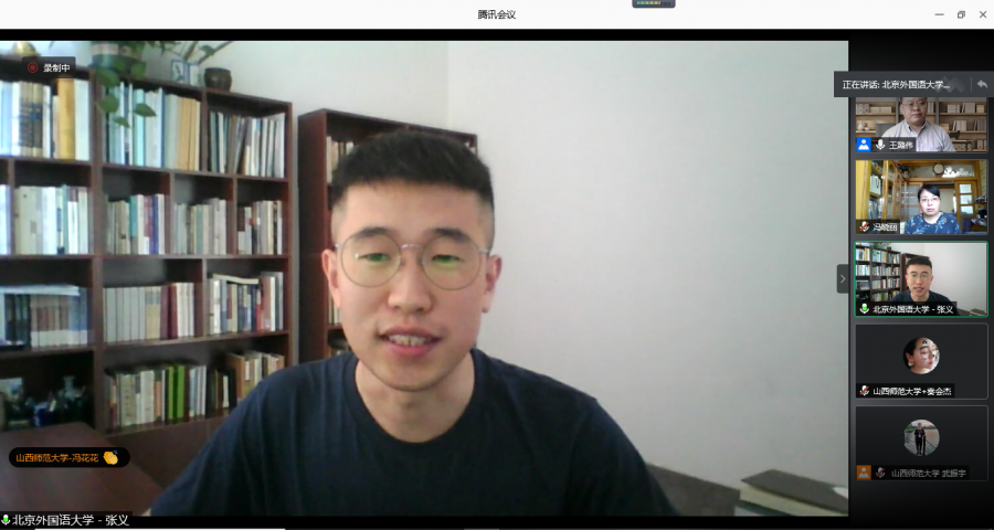副院长王潞伟致辞,北京外国语大学博士张义作为暑期学校学生代表发言,来自海内外近百所高校的221名硕、博研究生通过网络会议的形式参加开班仪式。