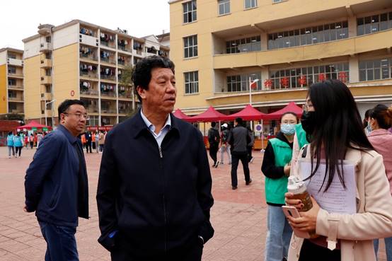 党委书记李志荣、副院长孙俊士、新生辅导员李蓓蓓、苗田等老师来到新松小广场,对迎新工作进行慰问。期间,他们向在场的迎新志愿者细心询问了解迎新有关情况,同时,还与大一新生亲切交流,并对新生表示热烈欢迎和亲切问候。