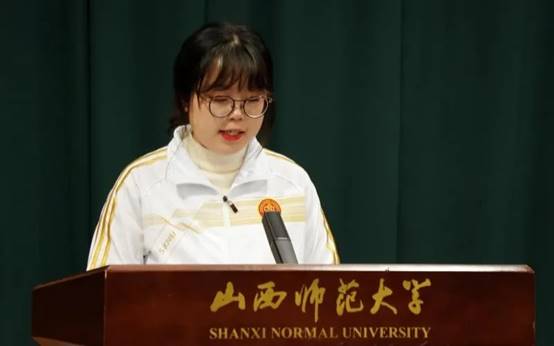 会议第五项,新生代表员敏娇上台发言,表达了自己对未来大学生活的向往,并主动提出要让自己的学习生活更加充实富有意义。至此,新生见面会圆满结束。