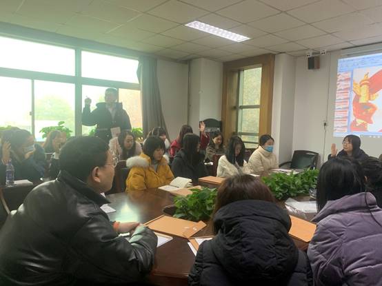 学生第一党支部书记许江娥,组织委员闫春和学生第一党支部全体成员参加会议。