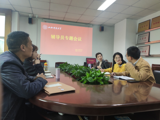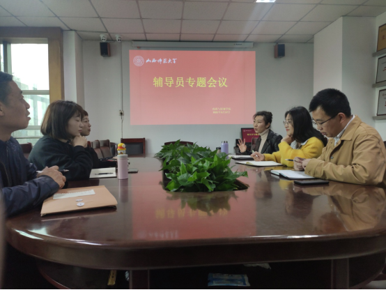 在科学会堂302室召开辅导员专题会议,院党委副书记、学工组组长杨谨瑜,全体本科辅导员教师参加了此次会议,会议由杨谨瑜老师主持。