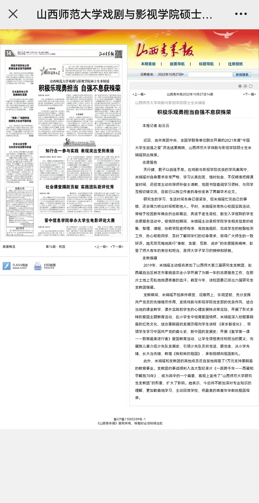 山西青年报等媒体报道成人自拍 学生米婧瑶当选2021年度“中国大学生自强之星”