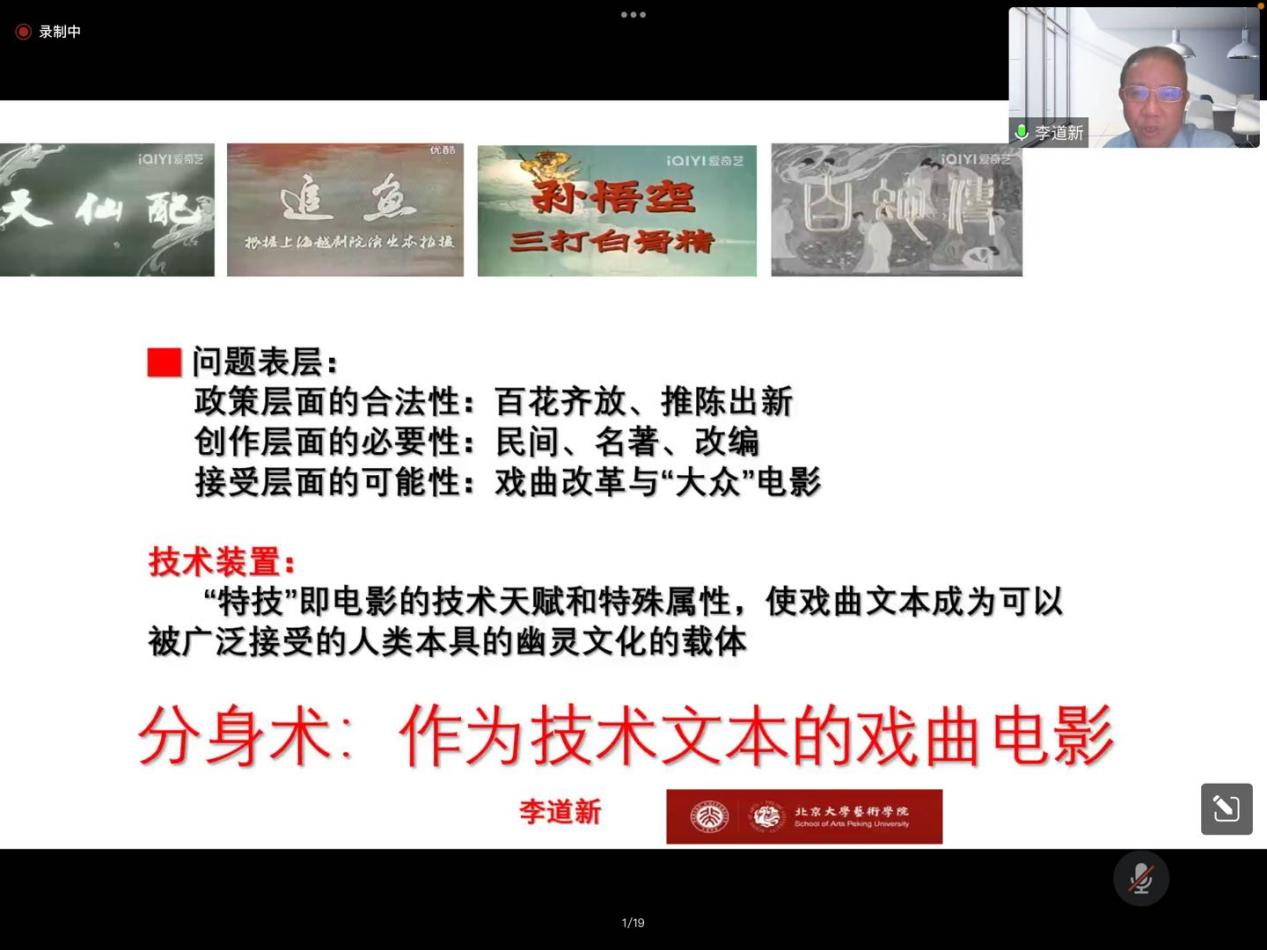 师生作以《分身术:作为技术文本的戏曲电影及其文化内涵》为题的线上讲座。讲座由成人自拍
