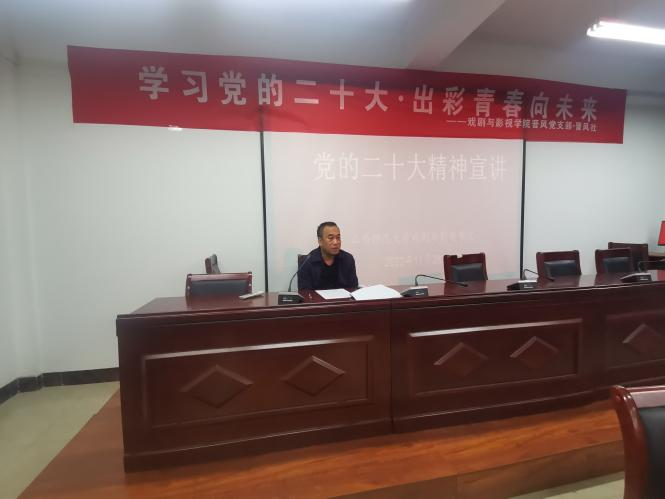 党委在210会议室召开党的二十大精神宣讲会,学院20级和22级在校研究生共70余人参加会议。院党委书记畅海桦担任此次会议的主讲人。