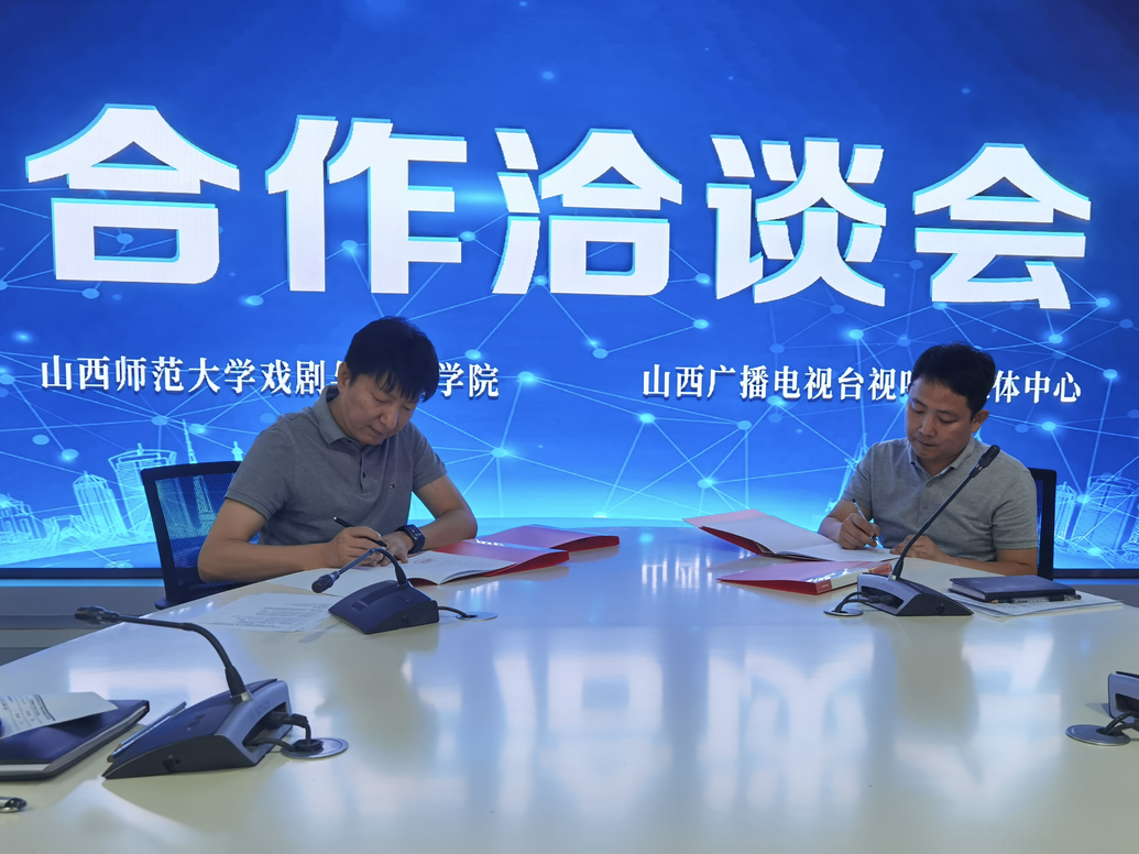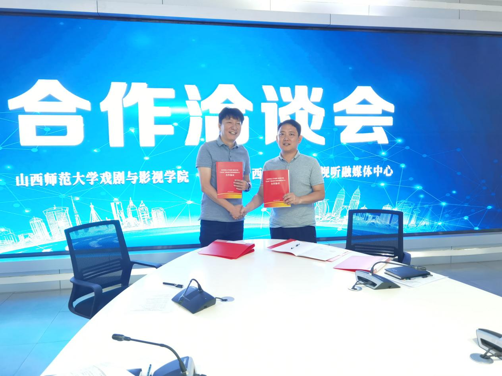 与山西广播电视台视听融媒体中心签署合作协议。下一步,双方将在人才培养、项目合作、党建合作等方面开展深度合作,为推动产学研融合发展与戏剧与影视专业建设开启新的起点,共同书写联合发展新篇章。