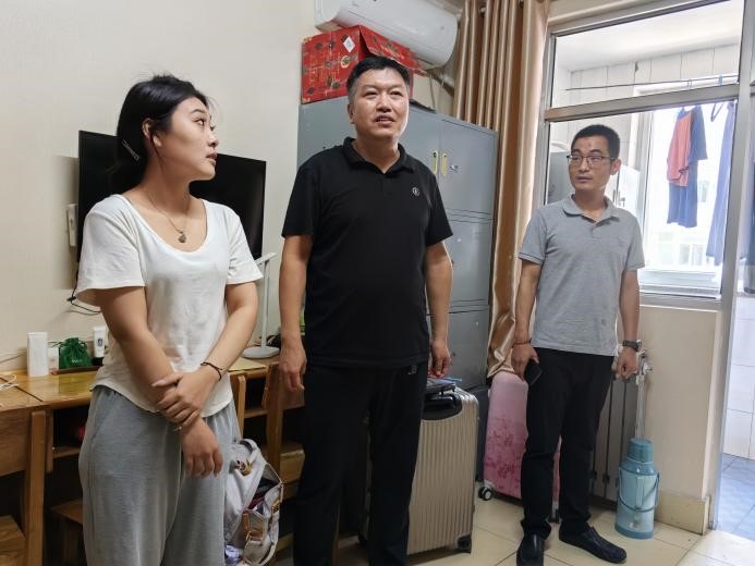 9月10日下午15点,院党委书记畅海桦、党委副书记宁志恒、副院长孙俊士、副院长颜汇成、团委书记李蓓蓓、新生辅导员及团委学生会干部一行前往南北区宿舍看望2023级新生。