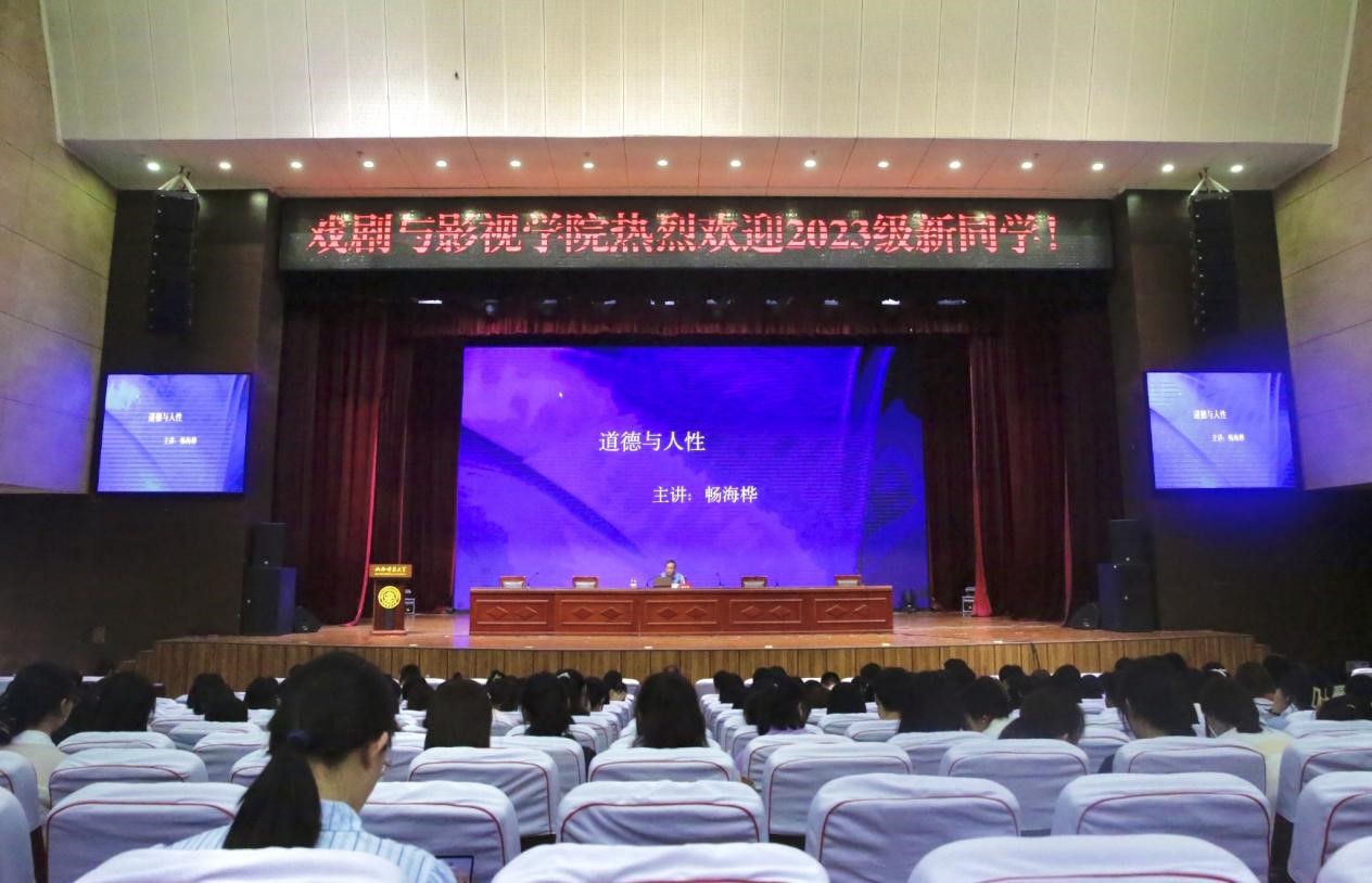 于科学会堂报告厅举办2023级新生“开学第一课”,全体2023级新生参加,讲座由院党委书记畅海桦主讲。