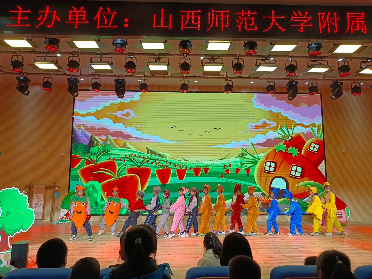 附属小学一年级的三个班级合作,分为六个小组,开展戏剧教育课堂,并在教授戏剧课的同时,开始了汇报演出的排练工作。在短短50天的时间内,根据人教版一年级的语文课本教材创编出了6个完整并成熟的演出剧目,让120名小学生在6个演出中收获了戏剧的乐趣并在心中种下了戏剧的种子。