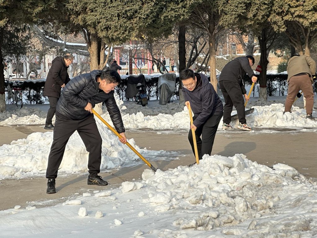 积极响应学校号召,迅速行动,组织教职工及在校学生开展暖心扫雪除冰活动,院长王潞伟、副院长孙俊士、颜汇成等20余名师生参加。