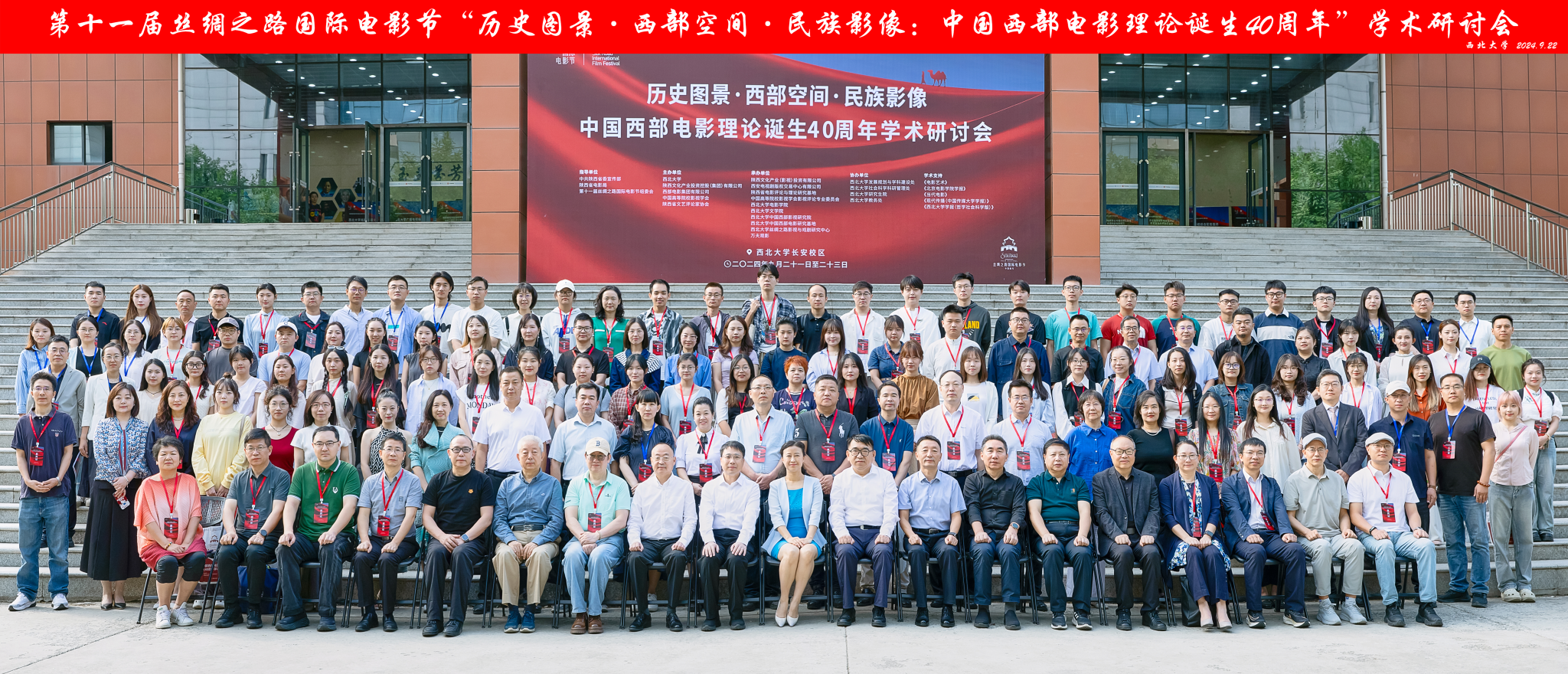 2024年9月22日-9月23日,第十一届丝绸之路国际电影节历史图景·西部空间·民族影像:中国西部电影理论诞生40周年学术研讨会在西北大学举办。本次研讨会云集百余位专家和学者,主要分为主旨发言、主题研讨会、分组研讨会和文化考察四个部分,围绕电影风格、文化传播、导演创作、地域空间生产、跨界融合等主题,探讨中国西部电影发展现状和路径。