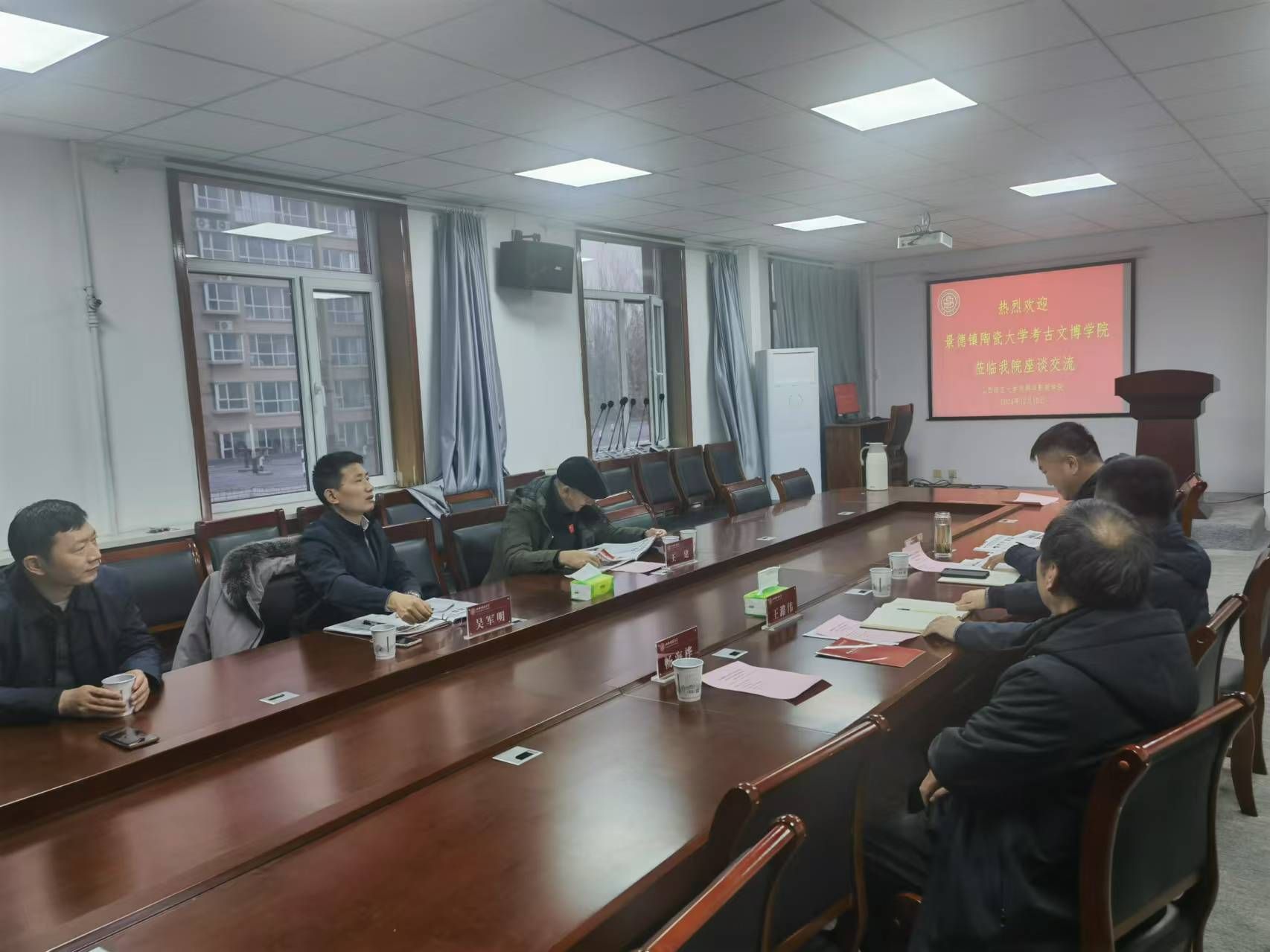 的办学历程,学科建设、师资情况,以及科研进展,并希望今后双方能够拓展合作方式,借鉴发展思路,推动学院建设的快速发展。景德镇陶瓷大学考古文博学院副院长吴军明介绍了此次来访的目的,介绍了学院的“两系一所”即考古系、文博系和古陶瓷研究所建设情况,以及考古学、文物保护技术、文化遗产、文物与博物馆学4个本科专业,科学技术史、文物2个一级学科硕士点和科学技术史1个一级学科博士点的建设情况。座谈会期间,双方围绕考古专业教学、科研、人才培养、未来合作等话题展开交流。