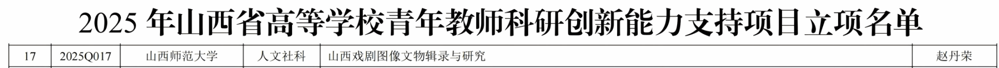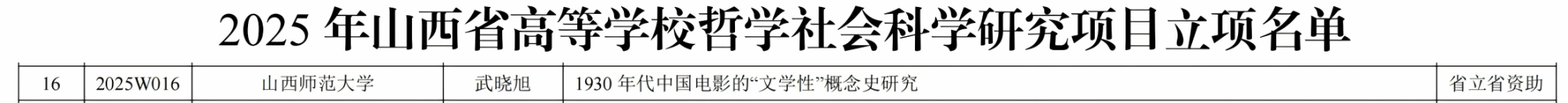 近日,2025年度山西省高等学校科技创新计划各类项目立项名单公布。成人自拍 赵丹荣老师申报的《山西戏剧图像文物辑录与研究》项目获批山西省高等学校青年教师科研创新能力支持项目立项。武晓旭老师申报的《1930年代中国电影的“文学性”概念史研究》获批山西省高等学校哲学社会科学研究项目立项。