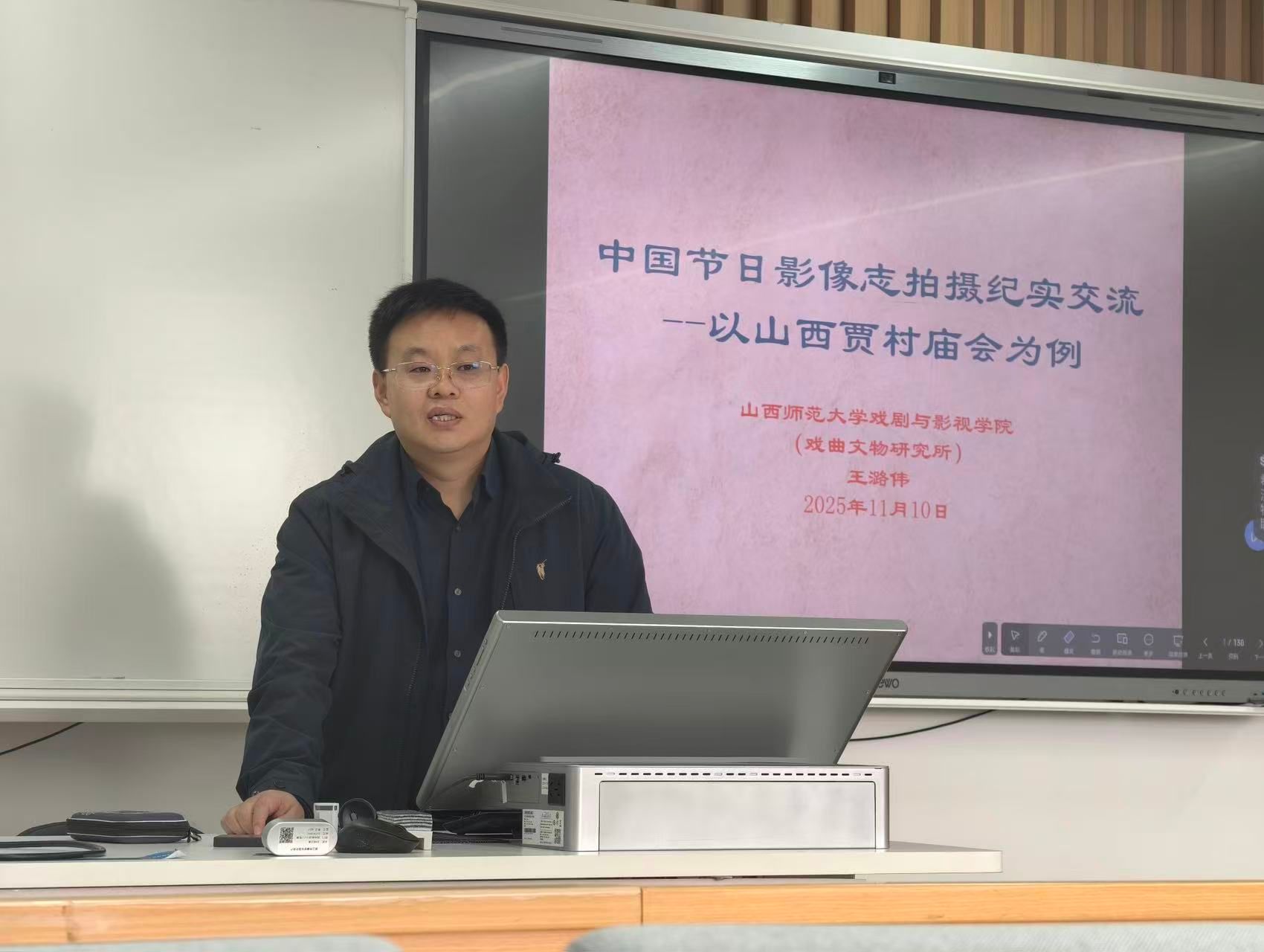 学术交流期间,院长王潞伟教授结合学院研究特色开展讲座交流。在浙江传媒学院电视与视听艺术学院,王潞伟教授以《中国节日影像志拍摄纪实交流——以山西贾村庙会为例》为题,围绕山西贾村庙会、仪式戏剧研究、非遗影像拍摄等话题进行学术讲座。在上海师范大学影视传媒学院,王潞伟教授以《戏曲文物研究的意义与方法——兼谈博士生的成长之路》为题,围绕戏曲文物的类型、价值、田野考察方法及学院人才培养经验等话题进行学术讲座。
