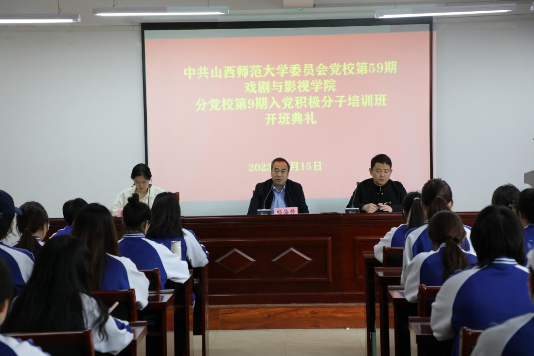分党校第9期入党积极分子培训班开班仪式于2023年4月15日在南区10号教学楼210会议室举行,院党委副书记宁志恒同志主持,院党委书记畅海桦同志和专职组织员张海霞同志出席,培训班全体学员参加。