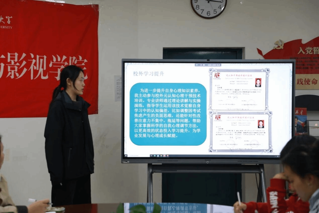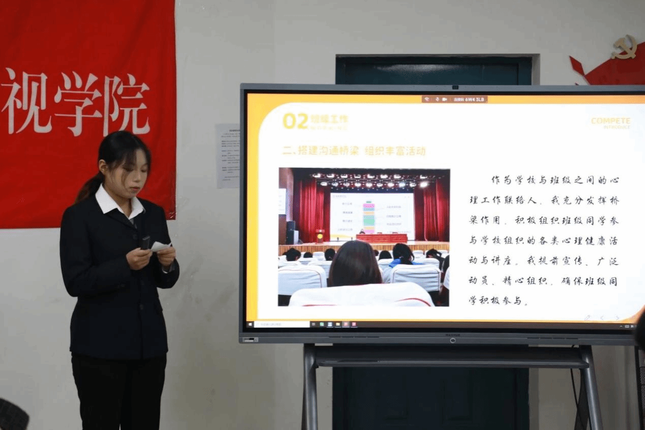 优秀心理委员评选中,各位心理委员围绕组织主题班会、参与相关培训等履职实绩进行汇报,并分享了工作亮点与个人感悟,充分彰显了其责任担当与专业素养。优秀班集体评选环节,各班班长通过精心准备的PPT,从制度建设、学风营造及文化活动等方面展开介绍,清晰呈现了班级积极向上、团结进取的良好风貌。