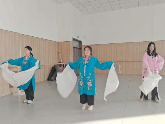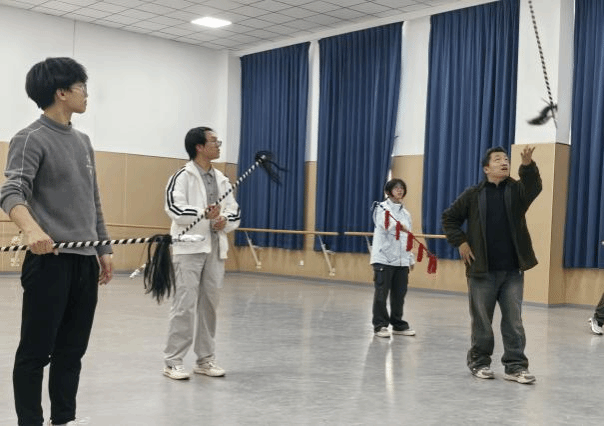 课堂上,指导老师分别针对不同戏曲技艺展开教学。手绢的旋转技巧、水袖的舒展收放,展现了戏曲柔美细腻的一面;而花枪的把持与剑花的运用,则让学员们体会到戏曲中刚劲有力的表现方式。老师们讲解清晰、示范到位,学员们认真观摩、积极模仿,课堂氛围融洽而热烈。