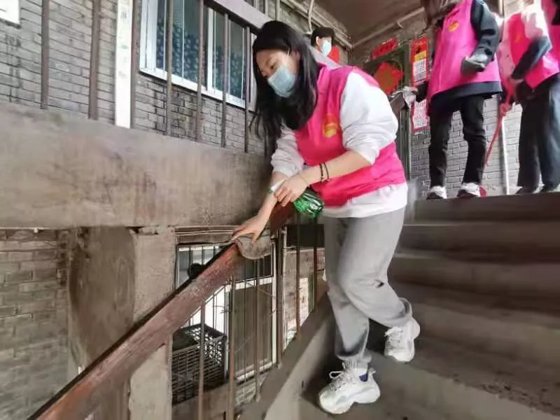 同时对楼道里的杂物进行归置,清除活动结束后,整个楼道焕然一新,同学们通过实际行动,解决了实际问题,净化了校园环境,切实响应并推进了“文明校园建设活动”。