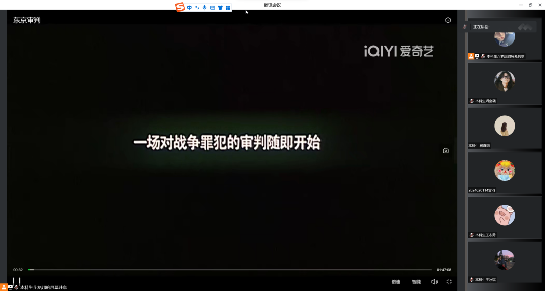 在校研究生与本科生,本次活动组织观看了爱国主义历史电影《东京审判》。