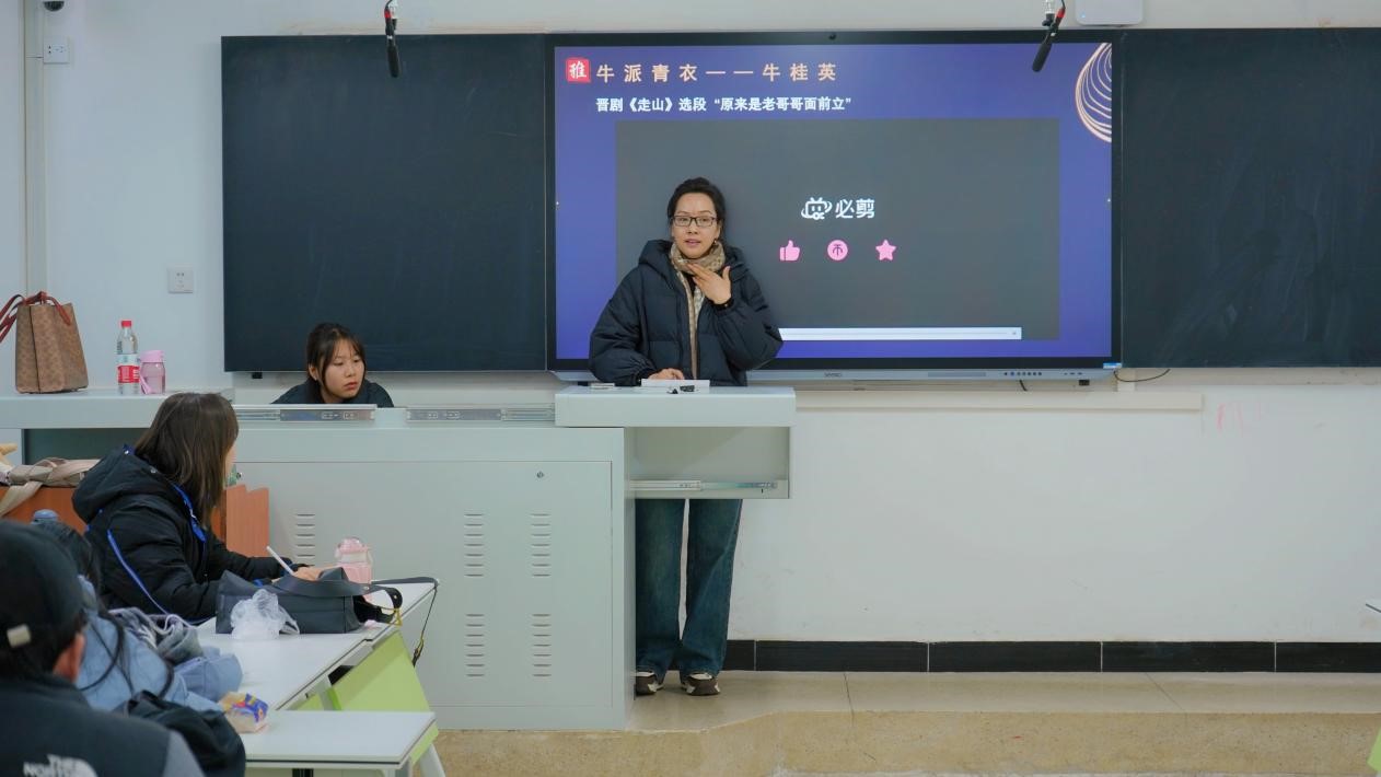 戏剧教研室于2023年12月6日在3号教学楼103室开展《谈晋剧青衣的唱腔特色》名家讲座。本次讲座特邀太原市晋剧艺术研究院国家一级演员、“爱爱腔”传承人魏建琴老师主讲,《戏曲鉴赏》课程负责人刘于锋老师主持,21240201班全体同学及部分戏曲爱好者参加。