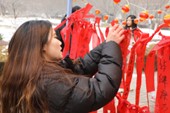 “系带祈福区”是本次活动的亮点之一,同学们将自己的新年愿望写在红色祈福带上并系好,形成了一面寄托着大家美好愿景的红丝带墙。
