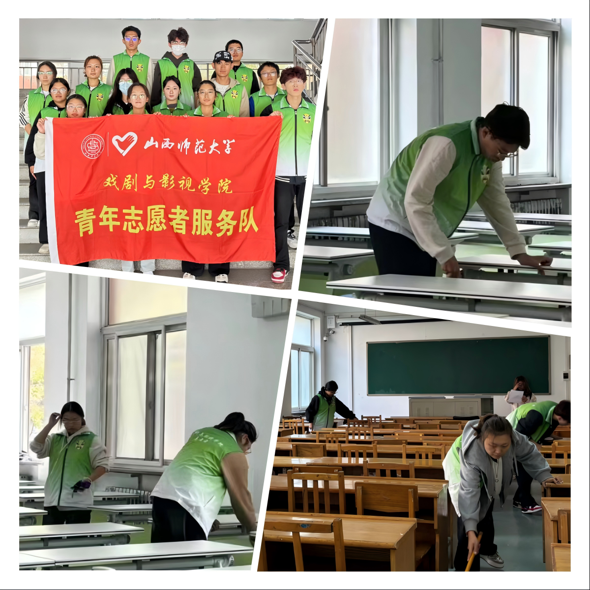 “爱之家”青年志愿者协会携院内同学开展“今天我是值日生”教室清扫活动。