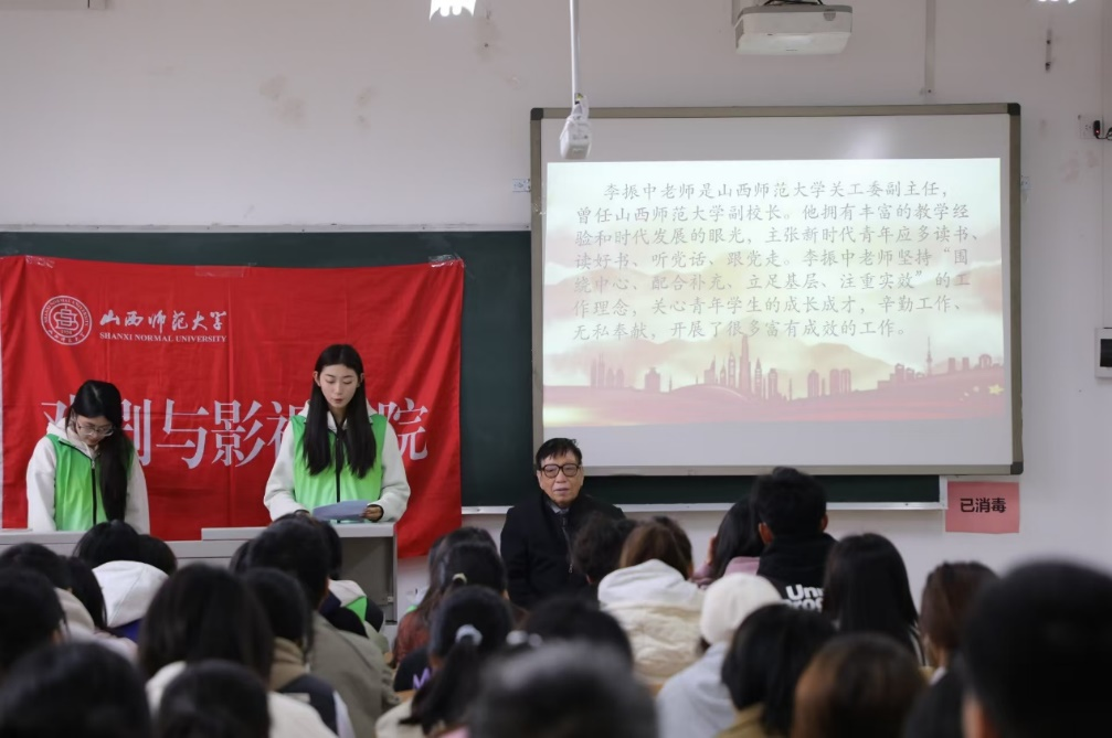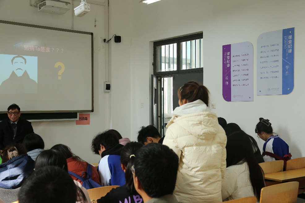 讲座伊始,李振中老师阐述了共产党艰苦卓绝的奋进历史,通过历史故事对同学们提出了四个要求,以中国传统诗词启发同学们积极认真地学习,用四字关键词“勤,专,恒,思”,浅显易懂地传达了长辈对青年学生的殷殷期盼。在讲座过程中,主持人安排了几项小游戏,如“红色人物猜猜猜”,根据其抽象特征,邀请同学们猜出屏幕上的相关人物,趣味横生,让同学们在欢乐中感受到红色文化的魅力。此外,李振中老师还强调了青年学生思想道德教育的重要性,他以尊老爱老的故事案例为引,讲述了许多古往今来敬老爱老的故事。古有木兰代父从军、黄香扇枕温席的佳话;今有陈毅探母等润人胸襟的美谈。他说,“尊老敬老是中华民族的传统美德,爱老助老是全社会的共同责任。”由此,李振中老师呼吁在座同学们尊老、爱老、敬老,“尊敬老人的家庭是和谐的家庭,尊敬老人的社会是发展的社会,尊敬老人的学校是进步的学校,尊敬老人的学生才是文明的学生。”