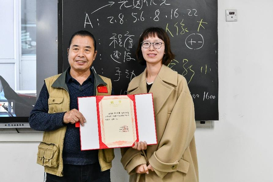 张忠娇老师亲自为饶二保老师颁发聘书,并对他为学校新闻摄影教育事业做出的贡献表示衷心的感谢和崇高的敬意。