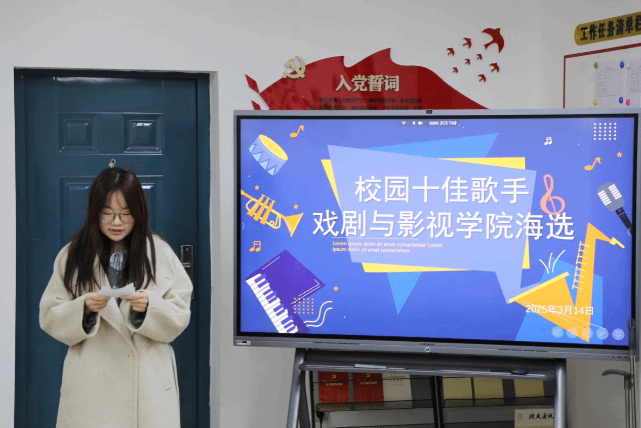 201教室歌声缭绕、座无虚席,2025年度"十佳歌手"初赛正式开始。八位怀揣音乐梦想的学子同台竞技,以歌会友,为现场观众呈现了一场精彩纷呈的视听盛宴。姜亚平、李蓓蓓、张鹤炀、阎晓璇四位专业评委老师担任评委。