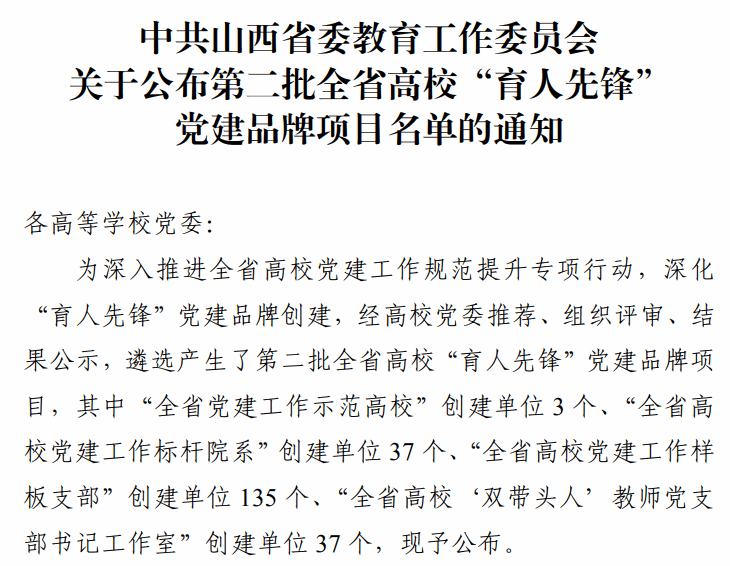 近日山西省教育厅公布的第二批高校“育人先锋”党建品牌项目拟入选名单中,成人自拍