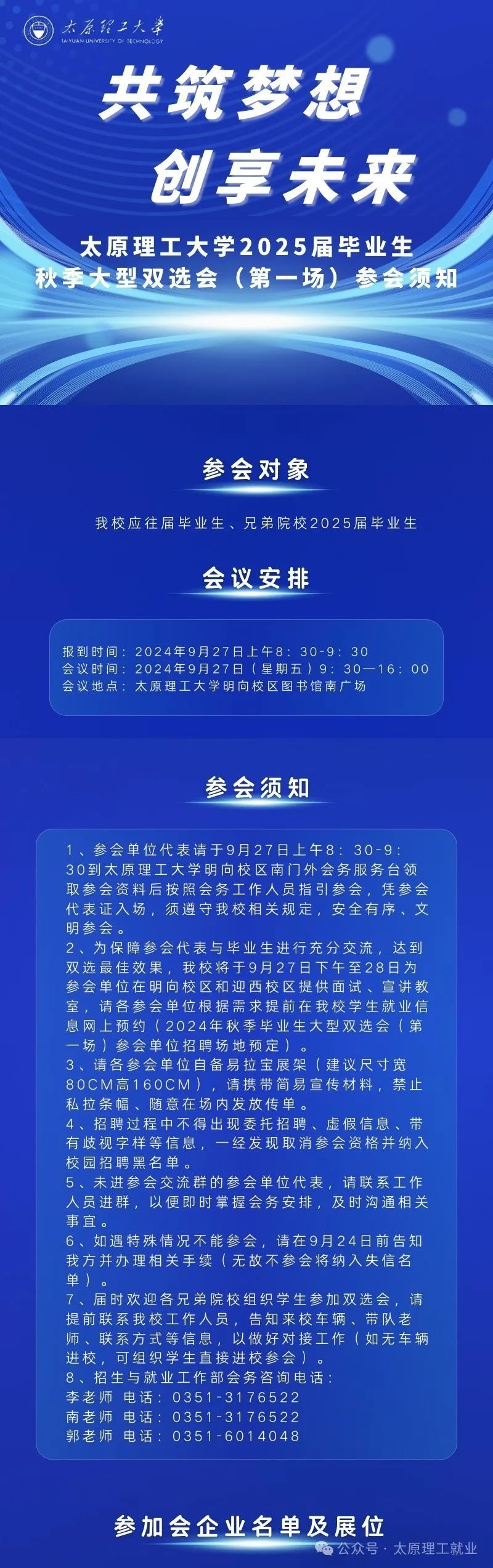 共筑梦想 创享未来-太原理工大学2025届毕业生秋季大型双选会(第一场)参会须知
